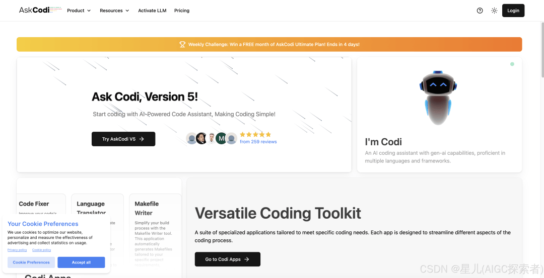 AskCodi基于OpenAI手艺的从动编程东西,帮力编程工做更高效、更便利。大大削减代码编写的时间。支撑多种IDE插件,越来越多的开辟者起头关心和需求高效的编程东西。